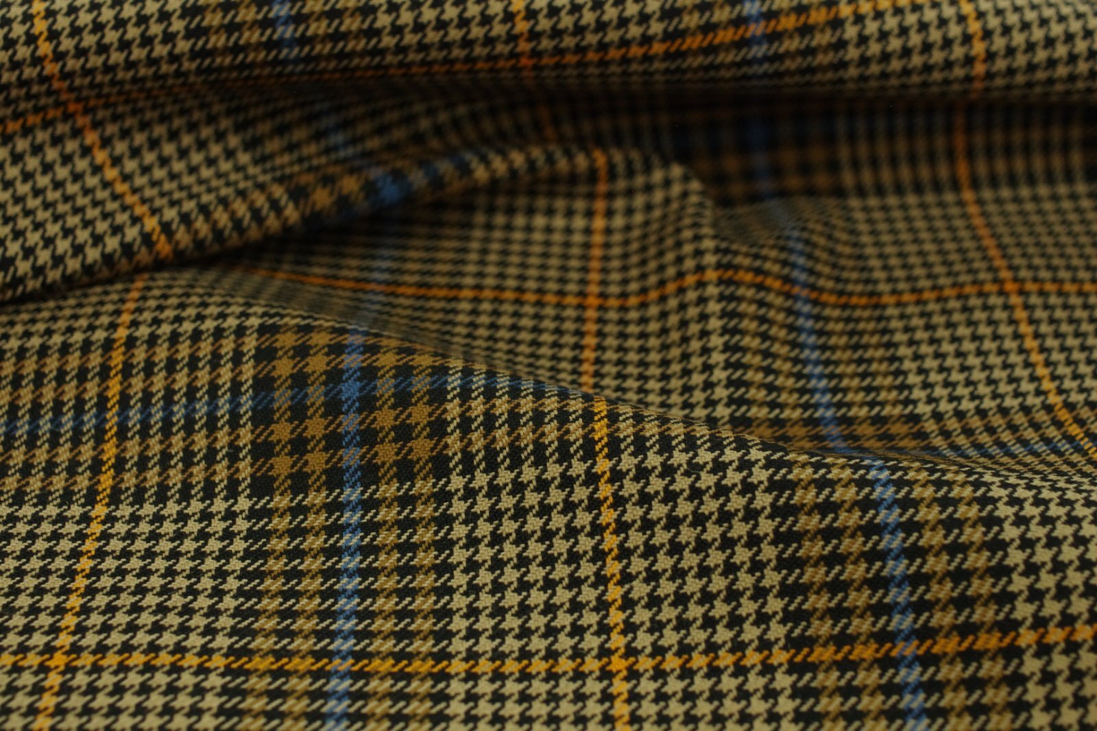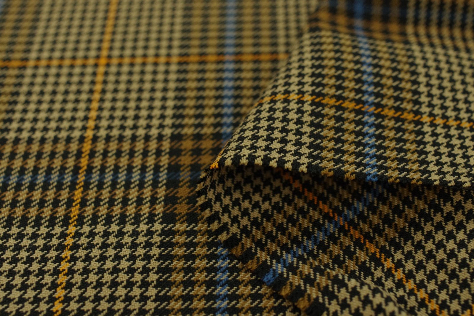 This wool check fabric features yarn-dyed threads reminiscent of those produced in the early Showa era.