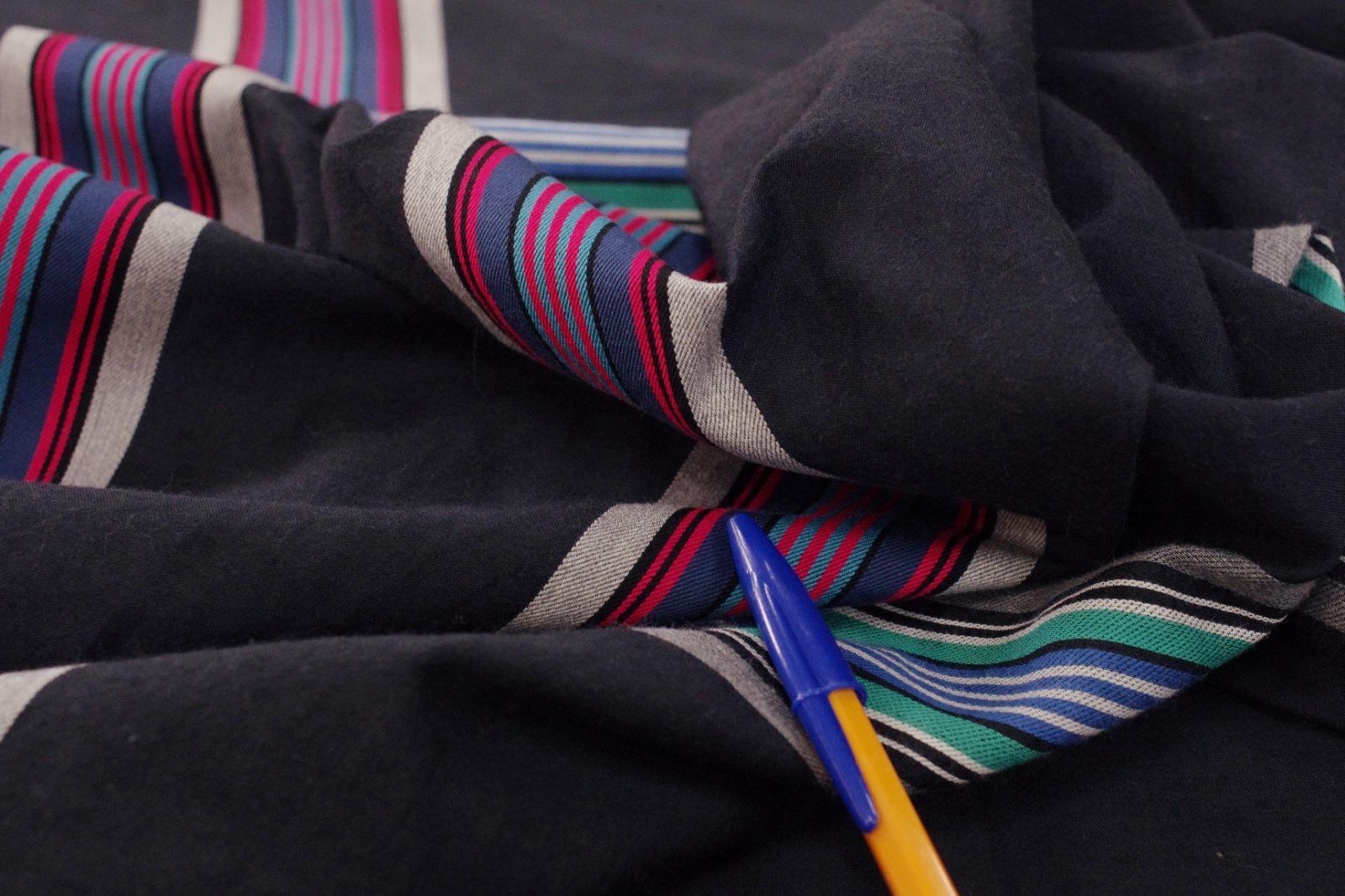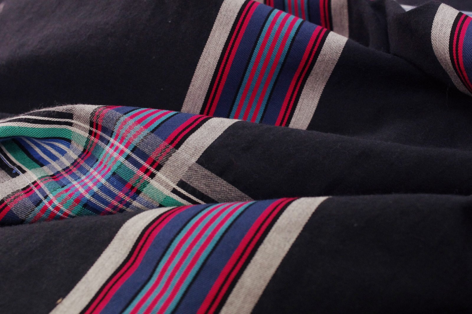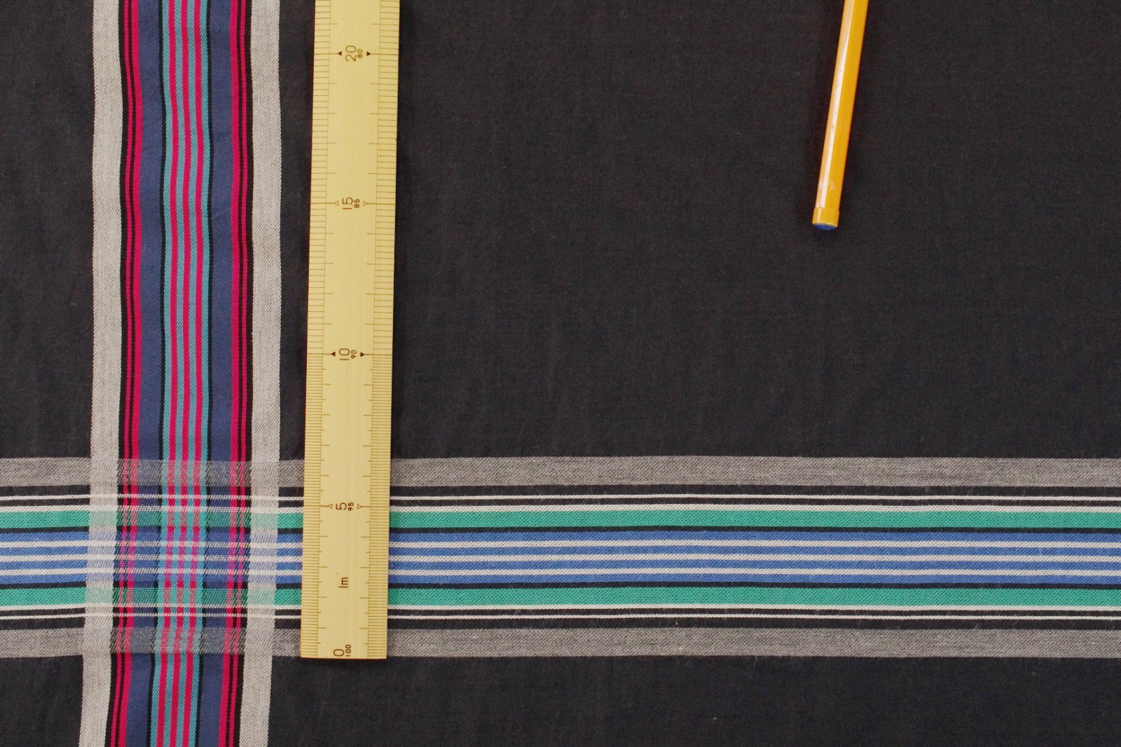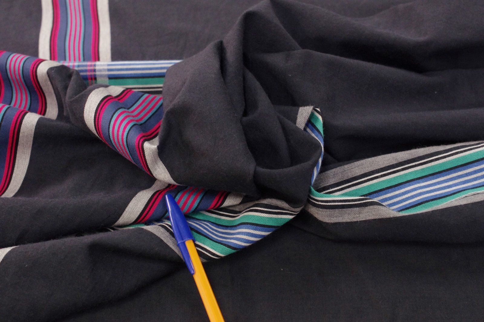 綿とウールの糸を使って平織りとジャガードで織られています。ベースの色はブルーグレー。