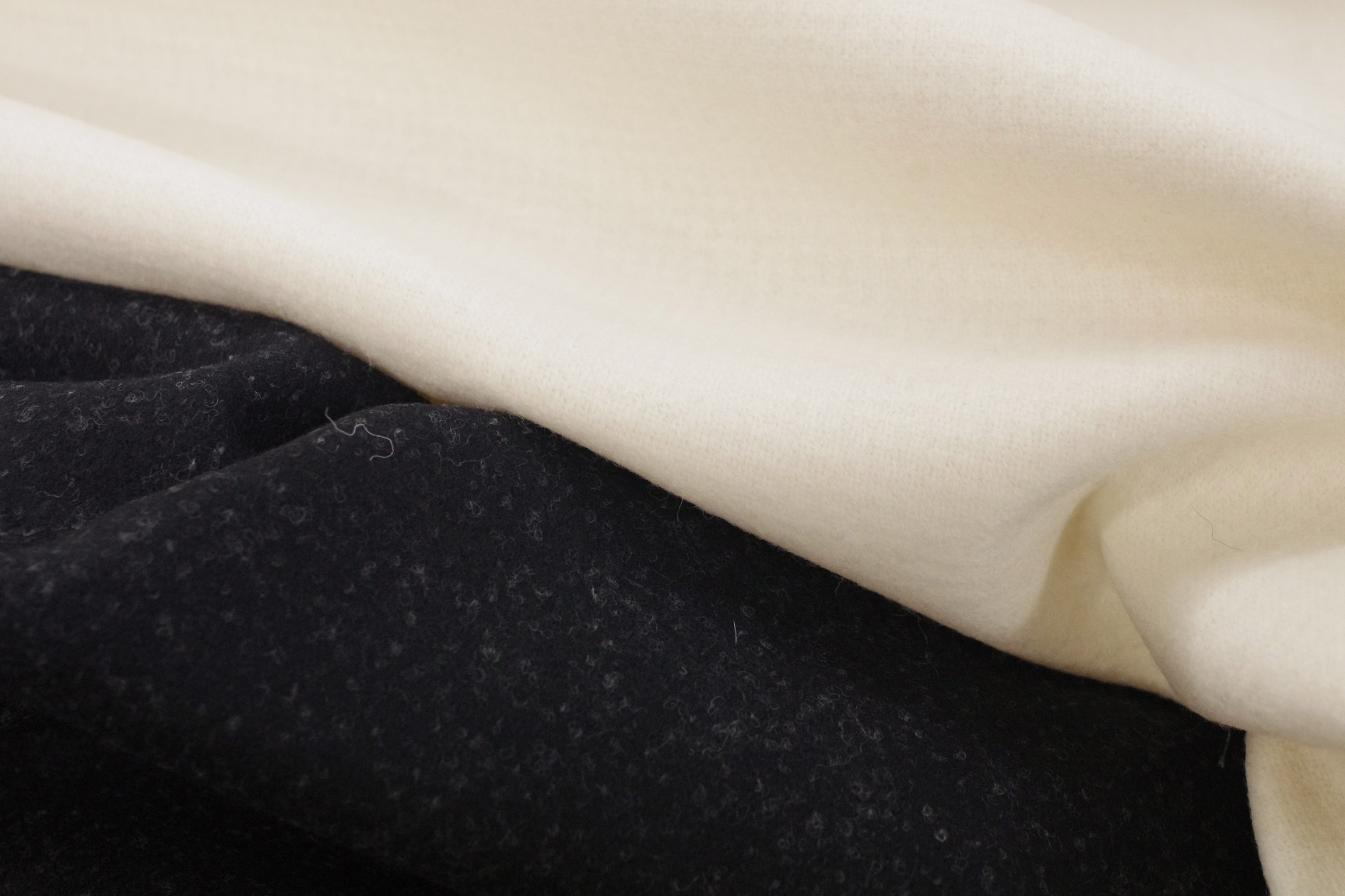 While brushed knits are often recognized as fabrics with a looped back surface, there are various types of brushed knits... This particular fabric features a flat back surface rather than loops. This design aims to prevent pilling on the fabric's reverse side.